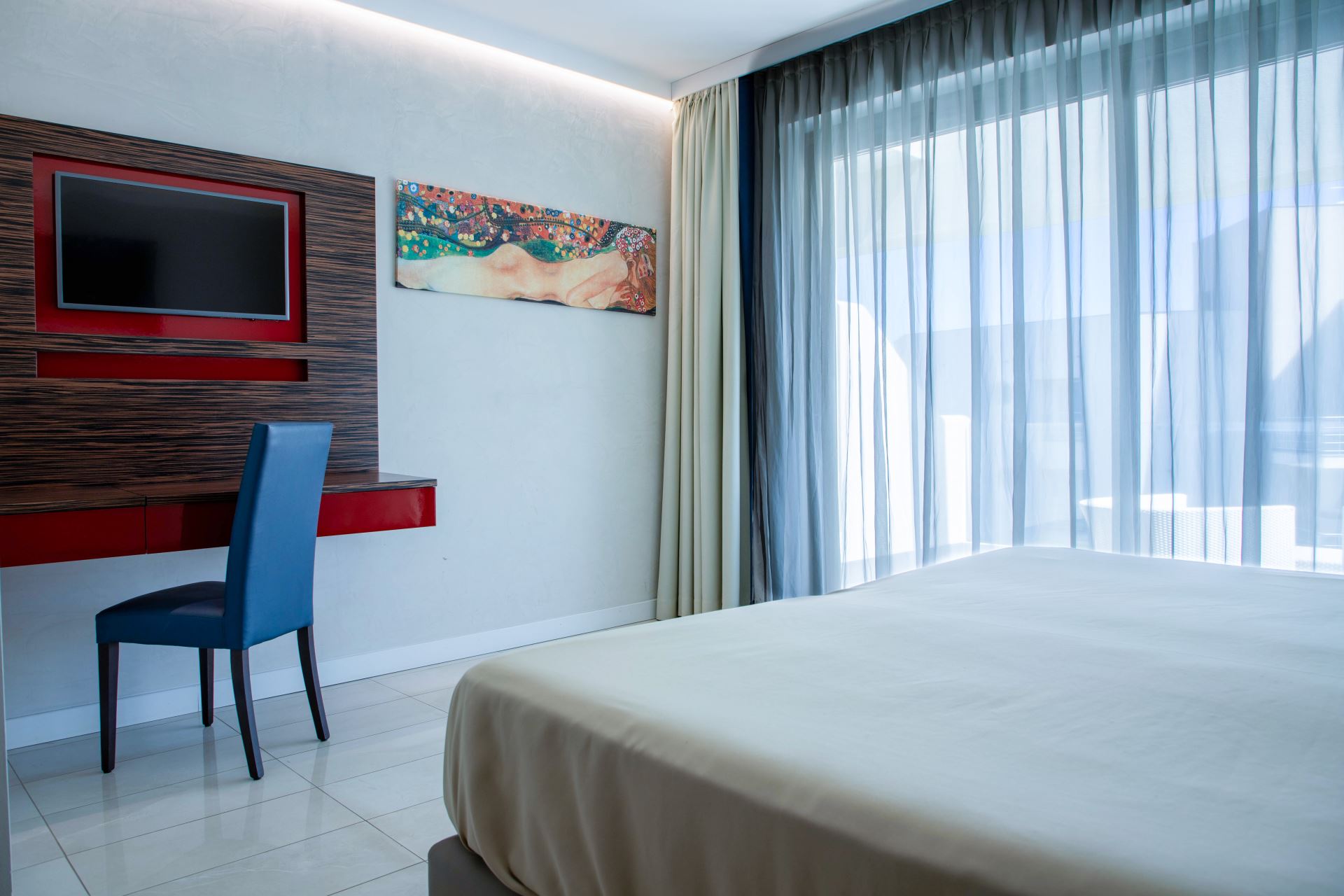 La camera Superior è ampia 30 metri quadrati. Eleganza e praticità si sposano alla perfezione per un soggiorno di lusso. Molto luminosa ed ha un ampio balcone con vista mare laterale. Il bagno in camera è arredato con vasca o doccia. L’arredo della camera comprende il letto matrimoniale (king size) o 2 letti singoli, il divano letto e poltroncina.